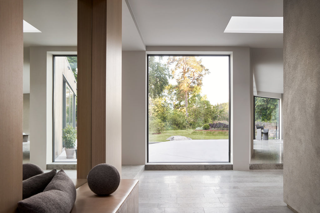 Ønsket var rene, minimalistiske overflader. Vi ønskede at bruge nogle få solide materialer, der gik igen i alle rum for et ensartet tidløst udtryk. Volumen, højt til loftet, spændende vinkler og store mængder lys. Vi studerede solens gang for at placere huset og lysindtag så fordelagtigt som muligt.