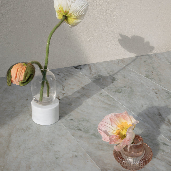 Marmor er en klassisk og holdbar natursten, som minder om elegante miljøer. Vi har et fantastisk udvalg af skandinavisk marmor, i nuancer fra skovgrøn, blå, hvid og pink. Den kan lægges både indendørs og udendørs, på gulve og vægge i for eksempel badeværelser, køkkener eller gange. Herunder kan du finde inspiration og læse om vores smukke marmorsorter.