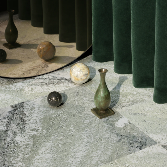 En klassisk grøn marmor med fantastisk åretegning, mønster og farve. Overfladen er slebet og glat. Gør sig rigtig godt sammen med klassiske materialer som eksempelvis messing og ædeltræ. Fås også med diamantfræset overflade.